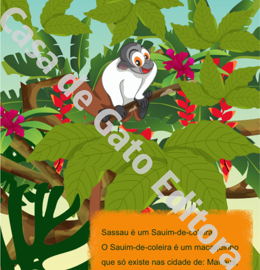 Com ilustrações primorosas e vibrantes, Sassau: O Sauim-de-coleira apresenta aos leitores o encantador macaquinho amazônico que vive apenas nas regiões de Manaus, Rio Preto da Eva e Itacoatiara.